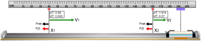Set up two photogates as shown above at x1 = 40 cm and x2 = 160 cm.
