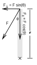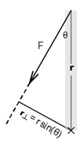 r⊥ = r sin(θ) is the component of r perpendicular to F and, thus, provides a torque of