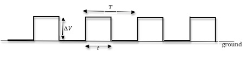In this experiment, rather than using a switch, we will be using a signal generator that can generate periodic wave forms of varying shapes, like a sine wave, triangular wave, and square wave. Both the frequencies and amplitudes of the wave forms can also be adjusted. Here we will use the signal generator to produce a time-varying voltage, with a square wave form, across the capacitor similar to the one shown in Fig. 5.