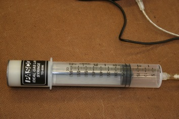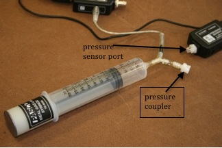 The apparatus is comprised of a plastic syringe with a plunger, a pressure sensor and a temperature sensor. See Fig. 4 below. The end of the syringe is connected via plastic tubing to a pressure couple, the other end of which is connected to the pressure sensor.