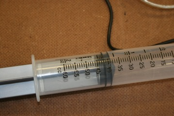 Repeat step 33 by pushing the plunger to 30 cc, 25 cc, and finally to 20 cc.