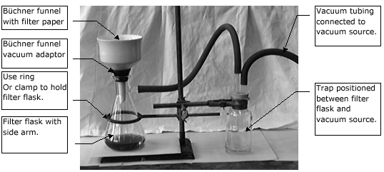 - Filtration Set up a clean Büchner funnel with filter paper and a clean filter flask connected to a trap and vacuum source as shown in the picture.