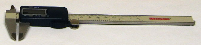 Place the jaws of the digital caliper in contact with each other and zero the scale (be sure the jaws are clean and free from dust or grit).
