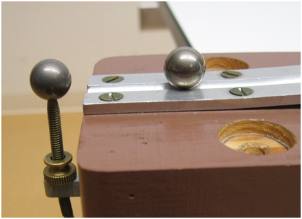 cIn order to obtain a head-on collision, the two balls must be at the same height when they collide. Adjust the target support until the two balls are at the same height.