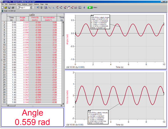 aTo acquire data, start the pendulum swinging and then click on the Collect Data button once again.
