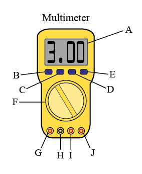 The multimeter is a measuring device that is used to measure voltage differences, electrical currents, and electrical resistances. It can measure other electrical properties as well. See Figure 1. At the top of the meter is an LCD (liquid crystal display), in the middle is the Function/Range Switch (dial), and at the bottom are four input sockets.