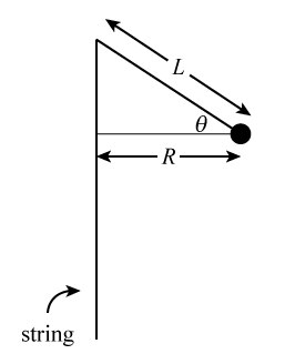 As discussed in the Introduction for this experiment, application of Newton's second law in the experimental setup yields the following. In this equation, f is the frequency of the circular motion of the ball and m is the mass of the ball. M is the mass suspended from the lower end of the string and L is the length of string between the center of the ball and the center of the upper end of the tube. Note that the angle θ that the string makes with the horizontal does not appear in Eq. (1). Derivation of Eq. (1) assumes that the acceleration of an object moving at constant speed v in a circular path of radius R has magnitudeac =