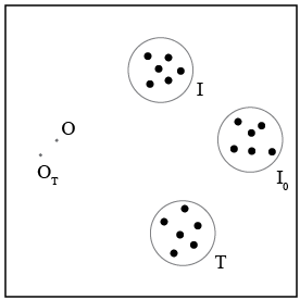 Using the compass provided, draw circles that enclose the sets of points labeled I, I0, and T. Clearly indicate the center of each circle. From here on, the labels I, I0, and T will refer to the center of the respective circles.