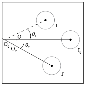 Use coordinates where the x-axis is along the line that connects O0 and I0. With a protractor, measure the angle θ1 between this x-axis and the line that connects O0 and I. (See Figure 6.) Record your result as a positive number.