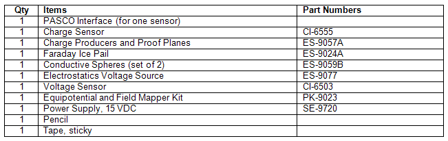 This lab has two parts. The purpose of Experiment 1 is to investigate electric charge distribution on a conductive sphere. Use a charge sensor, proof plane, Faraday 'Ice Pail', and the Capstone software to record and plot the distribution of charge on the sphere. For Experiment 2, the purpose is to determine the shape of the electric field around charge configurations on a piece of conductive paper. Use a voltage sensor and the Capstone software to detect the electric field lines between two conductors.Background