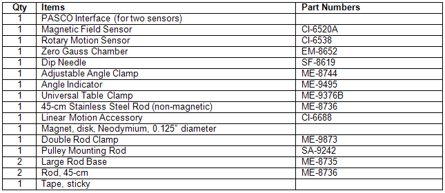 This lab has two parts. The purpose of Experiment 1 is to measure the magnitude and direction of the Earth's magnetic field. Use a magnetic field sensor mounted on a rotary motion sensor. Rotate the magnetic field sensor on the rotary motion sensor to measure the directional variation in the Earth's field. Use Capstone to measure and display the magnetic field strength versus direction. The purpose the Experiment 2 is to measure the magnitude field strength of a small neodymium magnet as the distance from the magnet increases. Use a magnetic field sensor and a rotary motion sensor. Use Capstone to measure and display the magnetic field strength versus distance.Background