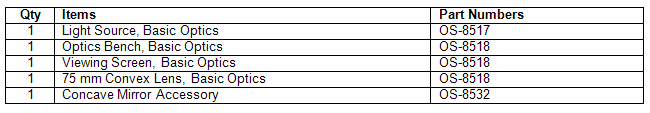 The purpose of Experiment 2 is to measure the focal length of a concave mirror. Use a light source, concave mirror, and half screen accessory on an optics bench to measure the focal length of the concave mirror.