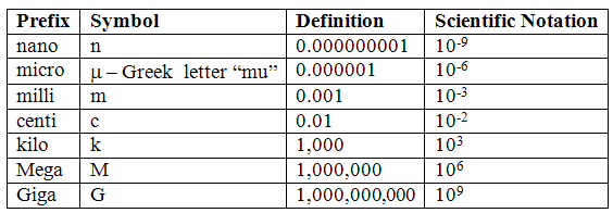 •Example: 1 centimeter (or cm) = 0.01 meters (or 10–2 m)