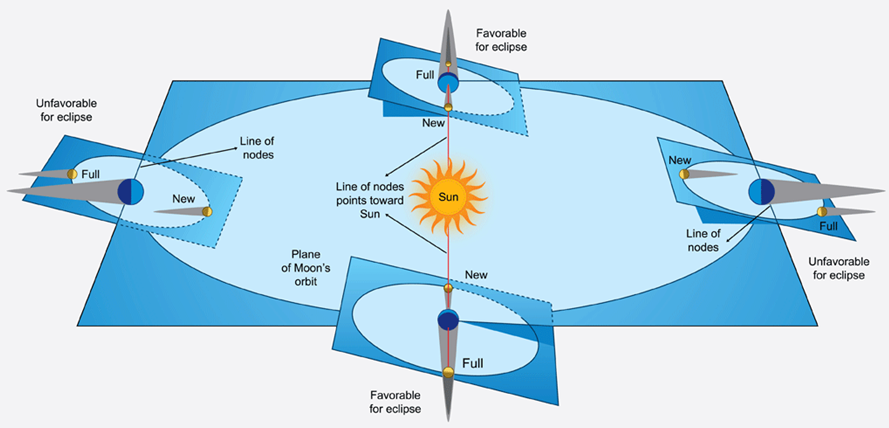 •The intersection of the Earth-Moon plane and the Sun-Earth plane is called the line of nodes.