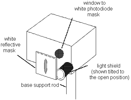 7Slide the Lens/Grating Assembly back and forth on its support rods, until you achieve the sharpest possible image of the aperture on the window in the phototube mask. The Assembly will probably end up very near to the end of the rod. Tighten the thumbscrew on the Lens/Grating Assembly and replace the light shield to prevent stray light from striking the phototube.
