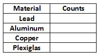 Which materials blocked the most radiation? Remember to account for statistical variations as well as differences in thickness. In your lab report list the materials in order of most absorbent to least. What do you think makes one material a better shield than the other? Compare the number of counts you detected with no shielding to the number of counts with just one shield. Using the information about your radiation source at the beginning of the lab, what reasons can you come up with for such a decrease in counts?Part B