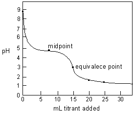 For each pH reading, you will be prompted for a keyboard entry; enter the total volume of titrant as read from the buret. Make sure the electrode is immersed in the solution and allow for a few seconds equilibration.