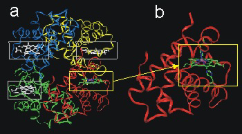 Hemoglobin is comprised of 600 amino acids and consists of four similar units (Figure 14.11a). Each unit contains an active site. Although each active site (Figure 14.11b) is the center of the oxygen transport process, the polypeptide chains play critical roles in stabilizing the binding and release of four oxygen molecules.