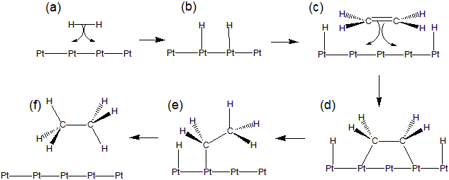 Figure 14.16: Mechanism for Metal Catalyzed Hydrogenation of Ethene