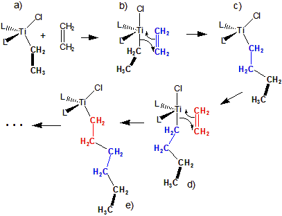 5The process is repeated with each ethene being inserted between the Ti and the growing polymer chain.