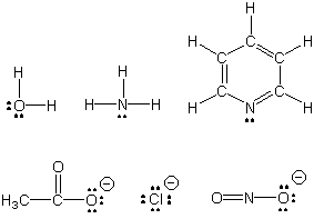 Ligands contain lone pairs that are used to bond to the metal. Ligands can be molecules (top row) or