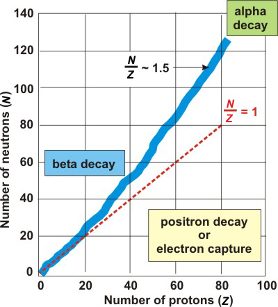 All of the positive charge (protons) of an atom is concentrated in a very small volume called the nucleus. The repulsive force between the protons is very large, so the force responsible for holding the nucleus together is also very large. In this section, we discuss the origin of that force and the characteristics of a nucleus that dictate whether or not it is stable.