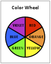 The color we see is the complementary color of that which was absorbed. Complementary colors are best shown on a color wheel, which is well known to art students. A simple color wheel is shown in Figure 2. Complementary colors are opposite each other on the color wheel.