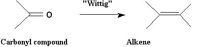 The carbon-carbon double bond, the "Functional Group" of all alkenes, is a very common functionality. It can be prepared in a variety of ways, many of which involve an "Elimination" reaction. For example, alcohols may be dehydrated under the influence of strong acid, or alkyl halides may be dehydrohalogenated in the presence of strong base. Both of these reactions have the disadvantage of employing harsh reaction conditions. In addition, the former reaction frequently results in skeletal rearrangement. A very general procedure for connecting two molecular fragments to make a new and larger molecule was announced in 1954 by the German Chemist Georg Wittig. For this discovery, Wittig was awarded the Nobel Prize in Chemistry in 1979.