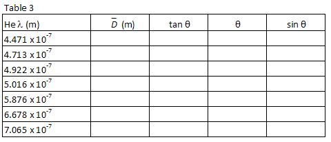 and sin θ for each wavelength. Record your calculations in Table 3.