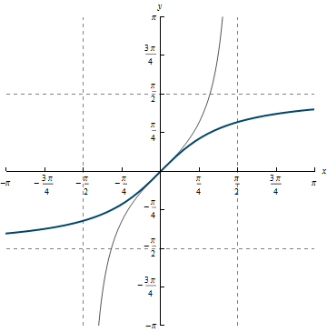 | $\tan^{-1}(x)$ or $\arctan(x)$ | $(-\infty, \infty)$ | $ \left(- \frac{\pi}{2}, \frac{\pi}{2}\right) $ | ![]() |