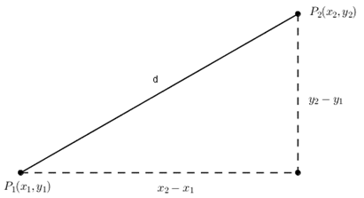 | $a^2 + b^2 = c^2$ | $d = \sqrt{(x_2 - x_1)^2 + (y_2 - y_1)^2}$ |