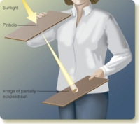 What would astronauts on the moon observe while people on Earth were seeing a total lunar eclipse? Imagining the same event from different points of view can help you sort out complex geometries. Now change your argument slightly and imagine the eclipse once again. If Earth had no atmosphere, how would this eclipse look different as viewed from Earth and from the moon?