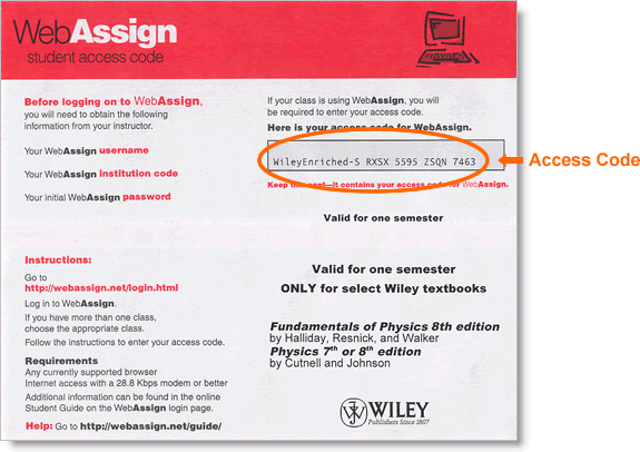 Online access code purchased from your WebAssign homepage