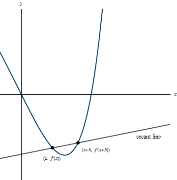 $m$$ = $$\frac{f(a \,+\, h) \,-\, f(a)}{h}$We use the formula for the slope of the secant line.