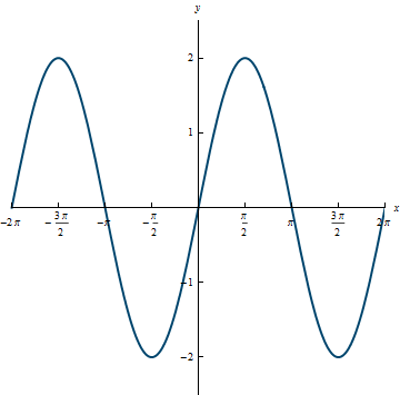 The number 2 in this equation changes the amplitude of the sine curve so that the range of this function is $[-2, 2]$ instead of $[-1, 1]$.