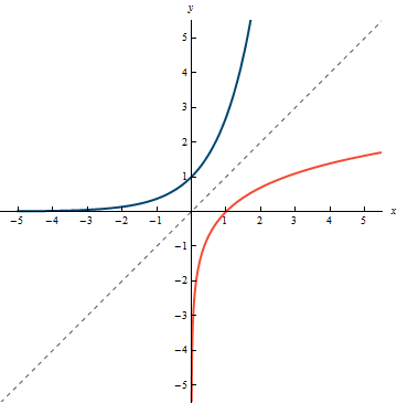 The graph of $f(x) = \ln(x)$ is shown in Example 3.21. The graph should not be surprising since it is the inverse function of $y = e^x$.