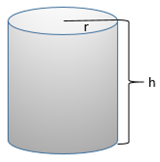 $V = \pi r^2h$ $A = 2\pi r^2 + 2\pi rh$ |